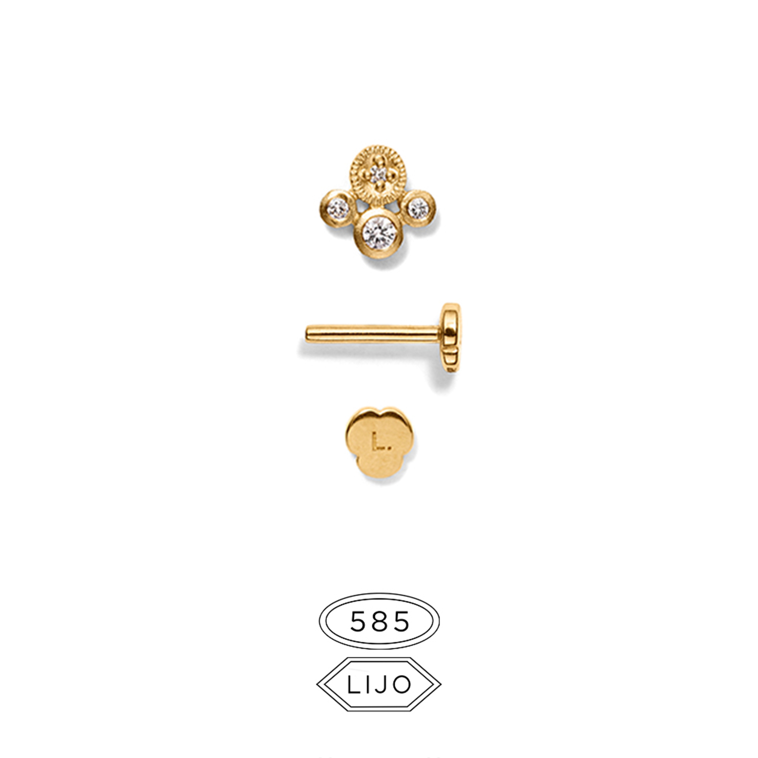 Flat back piercingsmykke / Fås som ørestik L. EMMELI guld diamant inklusiv STEM ONE