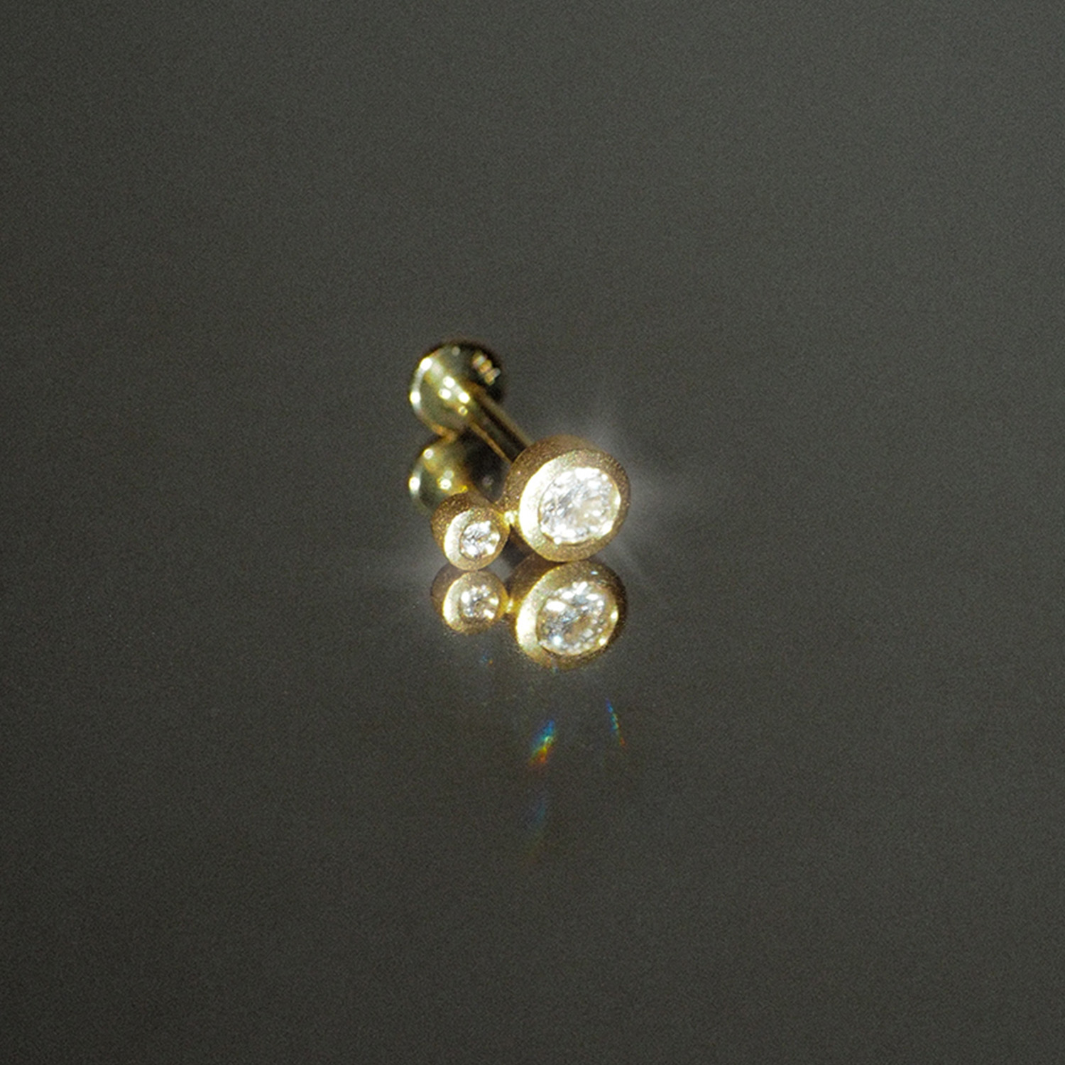 Diamant flat back piercingsmykke i 14 karat silkemat massivt guld inklusiv STEM ONE. Håndfattet med 1 x 0.06 ct og 1 x 0.005 ct brilliantslebbe diamanter Top Wesselton VS2.
