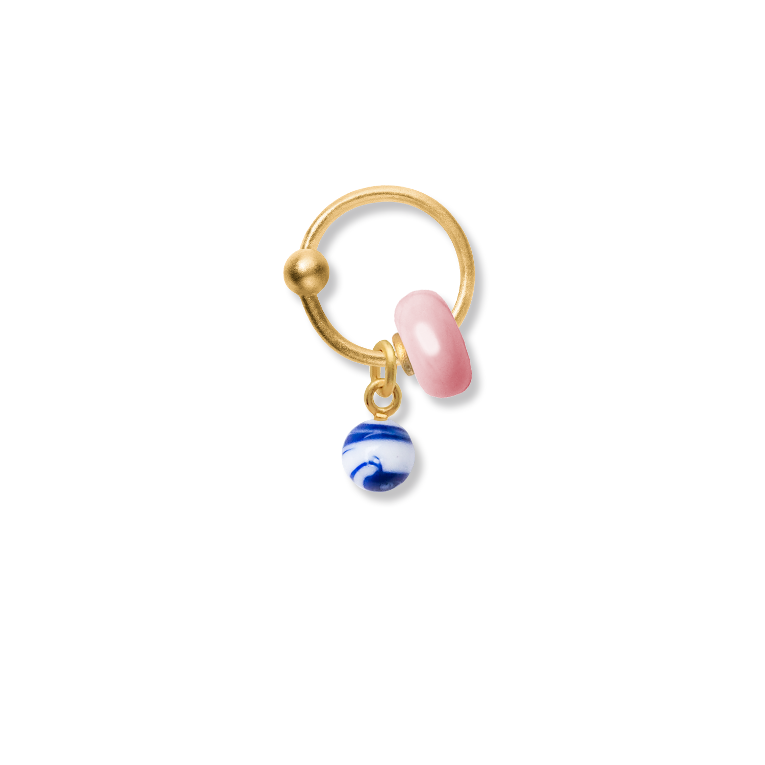 Eksklusiv håndlavet Murano glasperle i blå og hvid med 14 karat massivt guldøsken, særligt designet til vores ELLY TWO twist-øreringe og NALPHABET halskæde.