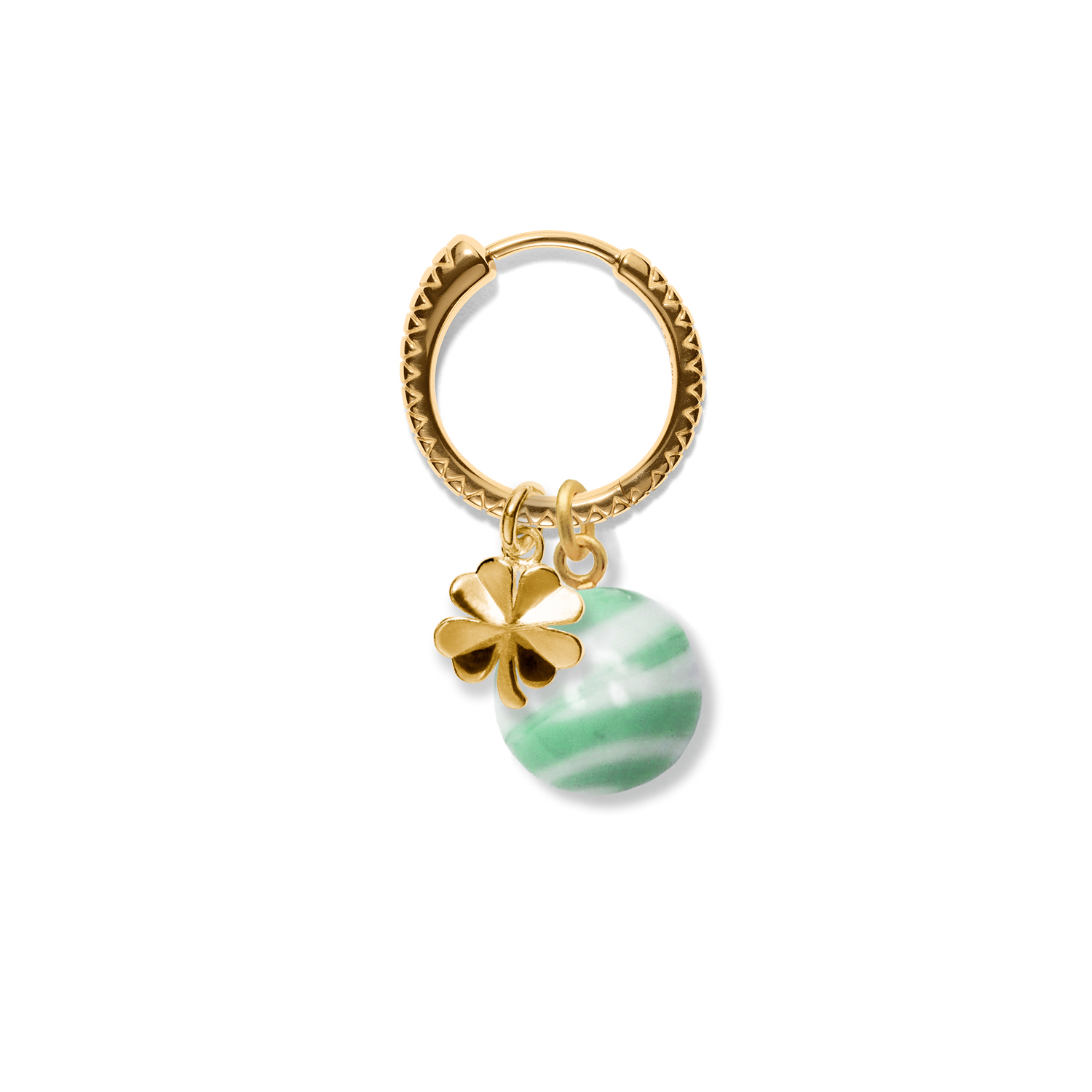 Eksklusiv håndlavet Murano glasperle i mint og hvid med 14 karat massivt guldøsken, særligt designet til vores ELLA TWO klik-øreringe og NALPHABET halskæde.