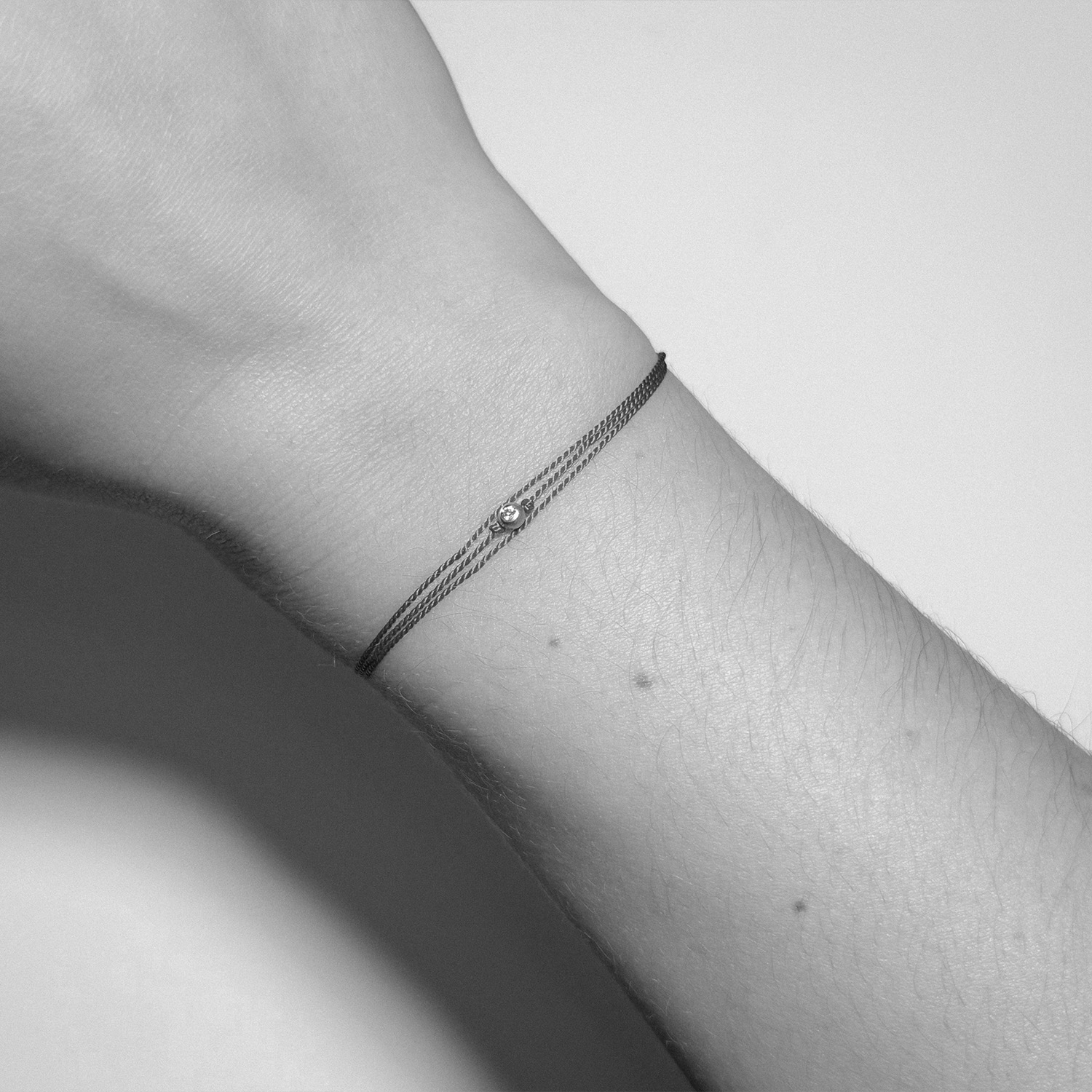 Adjustable hand-braided bracelet with a lock and diamond set in silk matte solid gold with 0.02 ct diamond.
