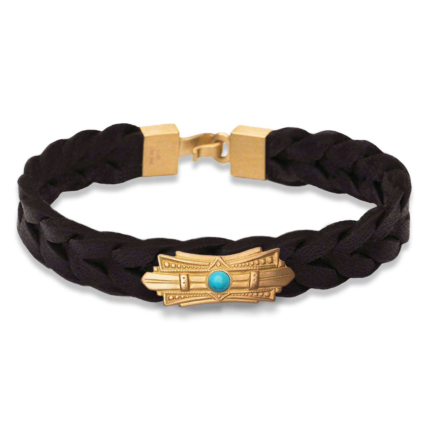 Leather bracelet adorned with ART DECO set with a cabochon cut turquoise stone. Choose your preferred length and lock of bracelet, or personalise your bracelet with up to five stars.
