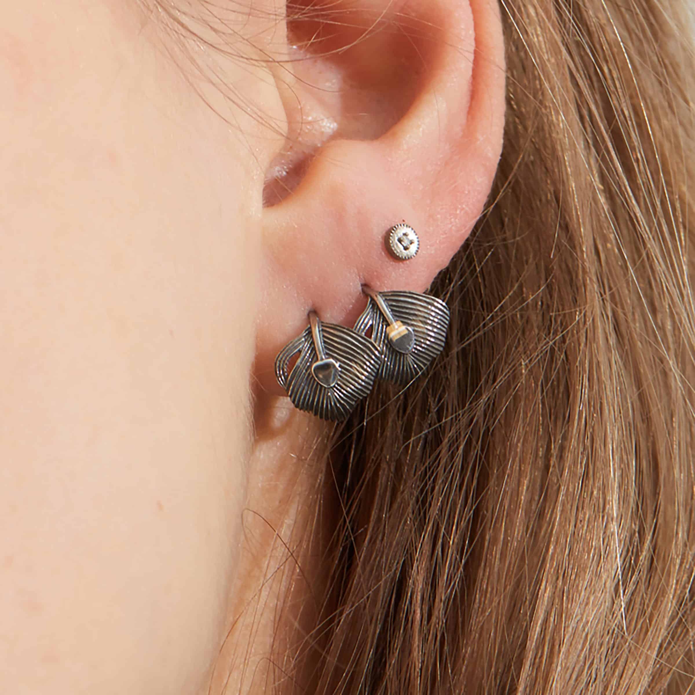 Earring of silk matte sterling silver with grey ruthenium. Set with 1 x 0.005 ct brilliant cut diamond Wesselton SI2.