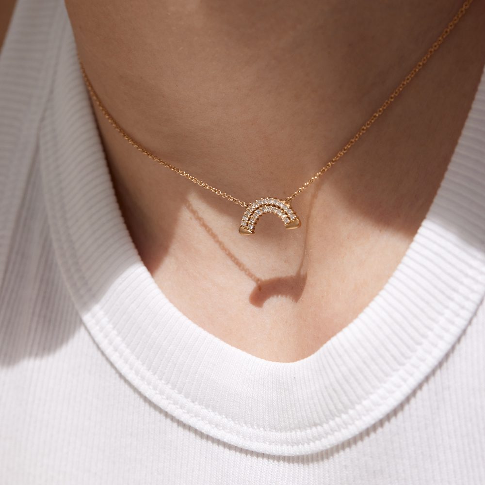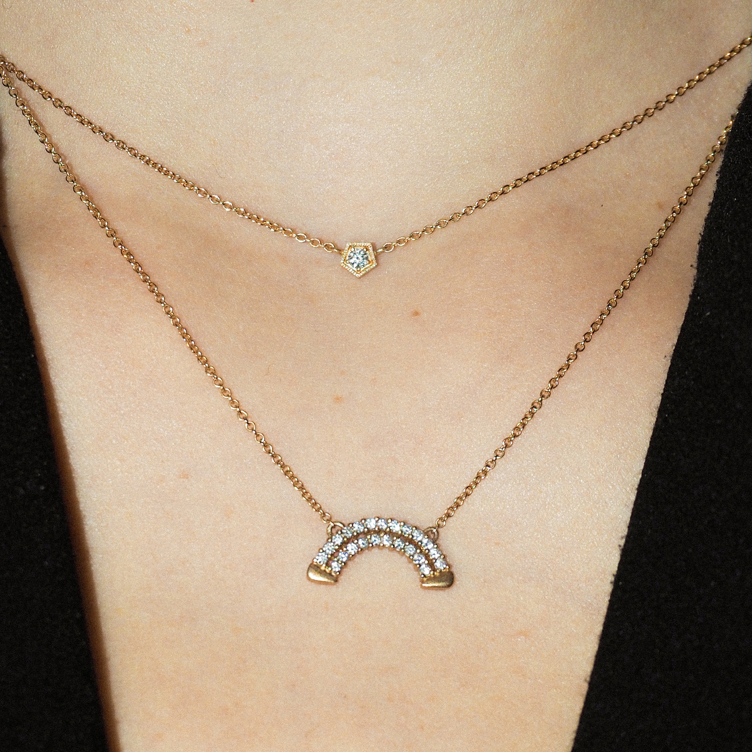 Necklace of silk matte 14 karat solid gold. Set with 23 x 0.01 ct brilliant cut diamonds Top Wesselton VS2. Length of necklace: 43 cm