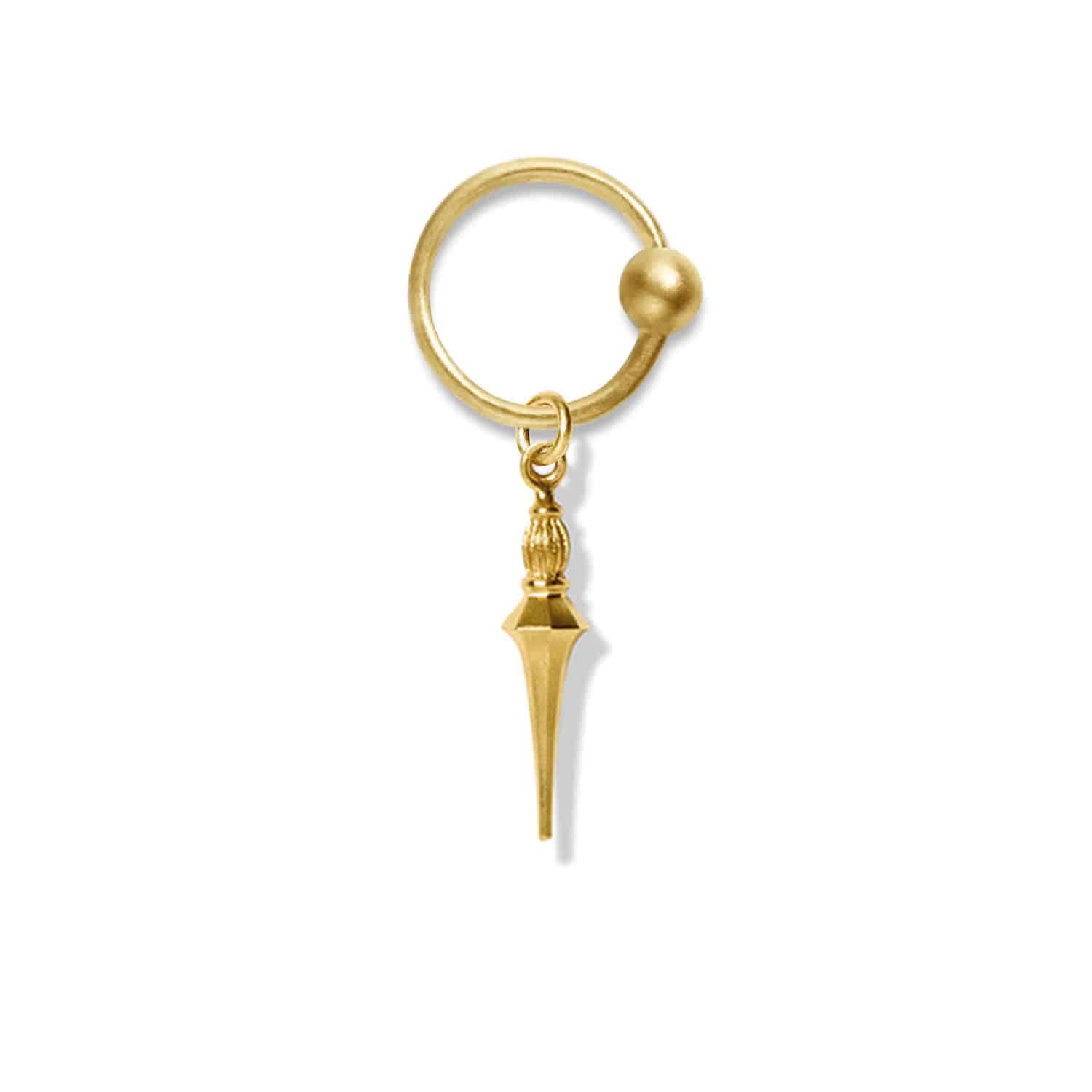 Earring pendant of silk matte 14 karat solid gold with round small eyelet.